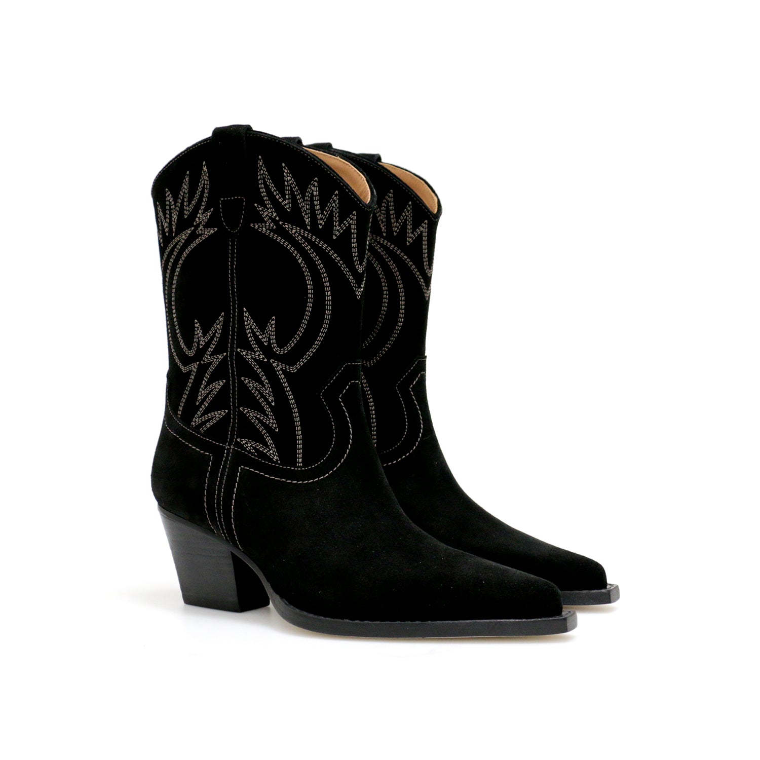As botas pretas femininas são um item essencial para qualquer guarda-roupa de moda, e esta bota cano médio com detalhes a bege são a escolha atemporal e elegante. A camurça cromo free é um material resistente e de qualidade, que proporciona conforto e durabilidade ao calçado, que lhe vai permitir que desfrutar das suas botas por muitas estações!